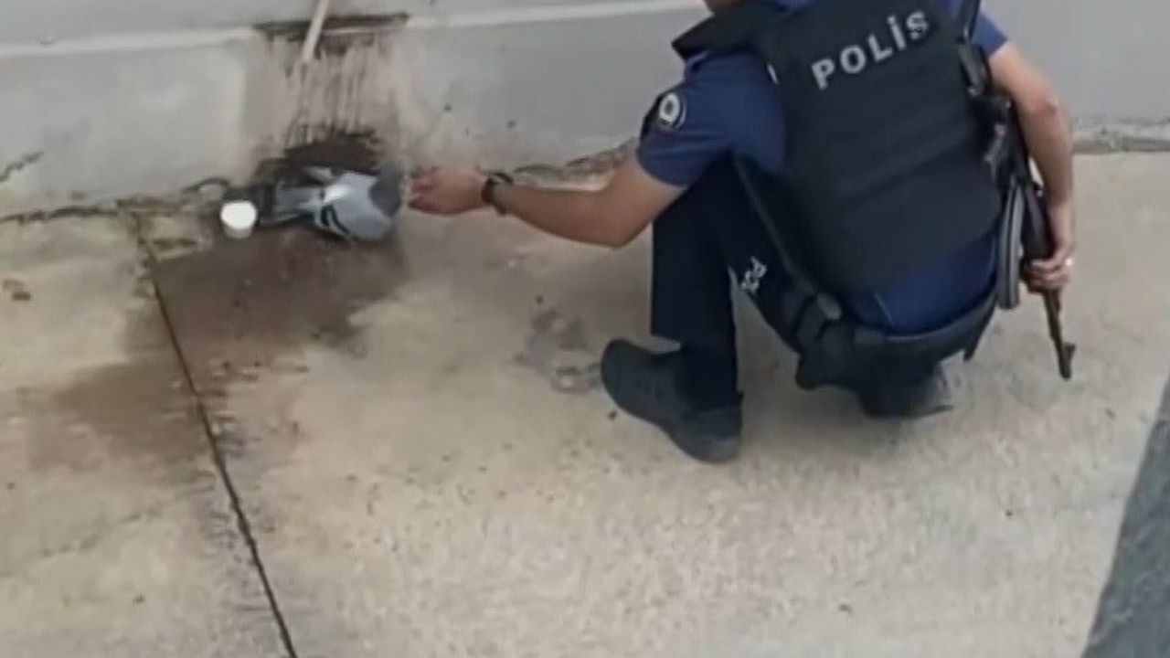 Yanındaki su şişesinden bir kaba döktüğü suyu kuşa uzatan polis memurunun bu duyarlı hareketi, çevredeki bir vatandaş tarafından kayda alındı. Kısa sürede sosyal medyada yayılan görüntü, izleyenler tarafından büyük beğeni topladı.