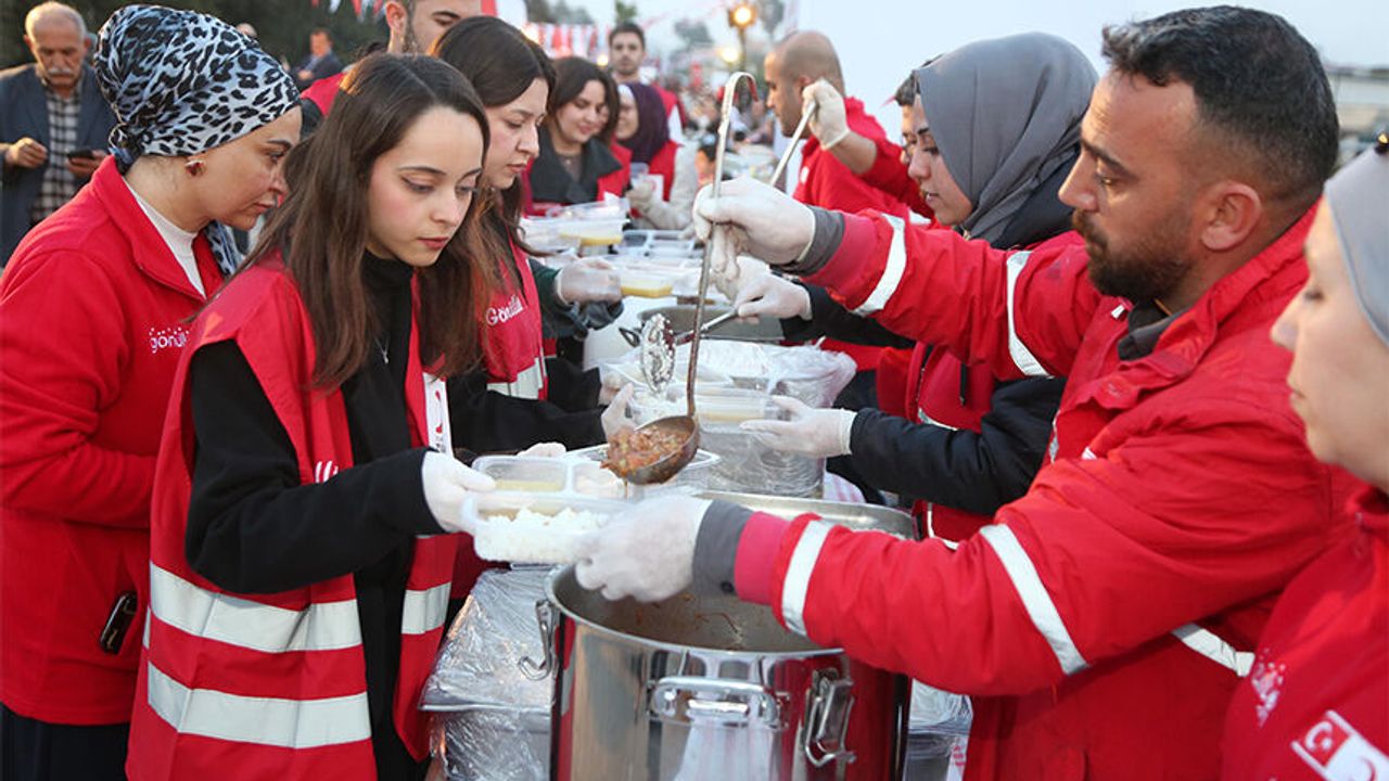 Yavuz, Kızılay gönüllüleriyle birlikte iftar programına katılanlar için yemek dağıtımı yaptı.