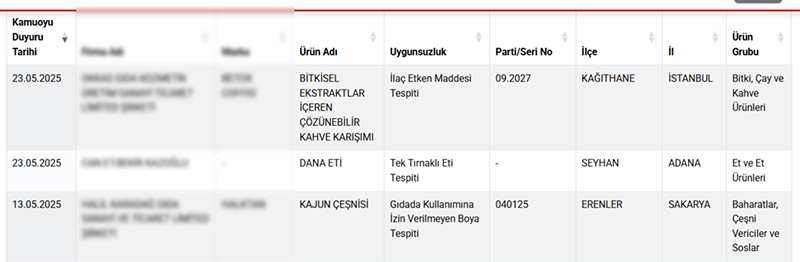 Denetimlerin sonucu 23 Mayıs 2025 tarihinde guvenilirgida.tarimorman.gov.tr adresinde yayımlandı. Seyhan ilçesinde et ve et ürünleri satışı yapan bir firmanın sattığı ‘dana eti’ ürününde tek tırnaklı eti tespit edildi.