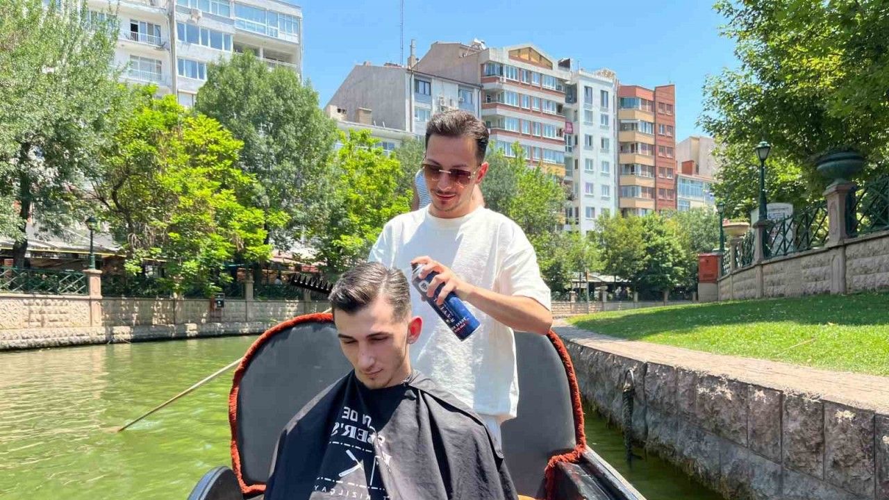 Genellikle turistlerin tercih ettiği Porsuk Çayı üzerinde yüzen bir gondolda müşterisinin saçını kesen Düşünceler, o anları sosyal medyada paylaştı. İlginç görüntüler kısa sürede büyük ilgi gördü ve çok sayıda yorum ve beğeni aldı.