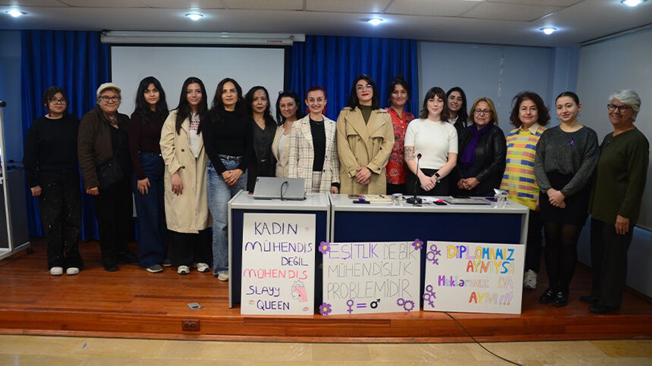 Kadınların çalışma yaşamında, kamusal alanda ve toplumsal hayatta eşit yurttaşlık talebiyle verdikleri mücadelenin güncelliğini koruduğunu vurgulayan Afşar, “TMMOB’li kadınlar olarak, mühendislik, mimarlık ve şehir plancılığı alanlarında yürüttüğümüz mesleki faaliyet ile toplumsal sorumluluğumuzu birbirinden ayrı görmüyor; bilimin ve tekniğin ışığında eşit bir geleceğin kurulmasının zorunlu olduğunu savunuyoruz.” ifadelerini kullandı.