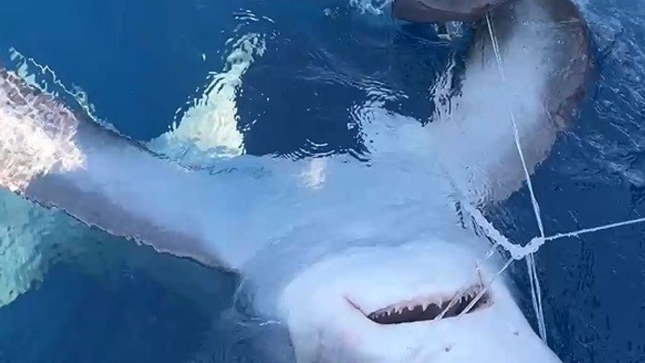 Balıkçı İlker Özdemir ve arkadaşları, oltaya takılan köpek balığını dikkatli bir şekilde serbest bırakarak doğal yaşam alanı olan denize geri saldı. Dev köpek balığı kısa sürede tekneden uzaklaşarak gözden kayboldu.