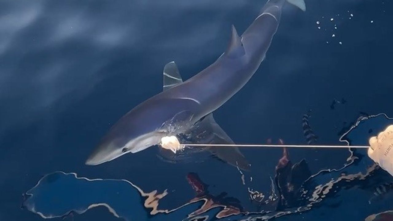 Yaklaşık 2,5 metre uzunluğunda ve 100 kilogram ağırlığındaki mavi köpek balığı, av sırasında cep telefonuyla kaydedildi, ardından doğal yaşam alanı olan denize geri bırakıldı. Arkadaşlarıyla birlikte balık avına çıkan İlker Özdemir’in Kaleköy açıklarında bıraktığı paragat oltasına mavi köpek balığı takıldı. Özdemir, o anları cep telefonuyla kaydederken, bu türün kıyılara kadar yaklaşmasının endişe verici olduğunu söyledi.
