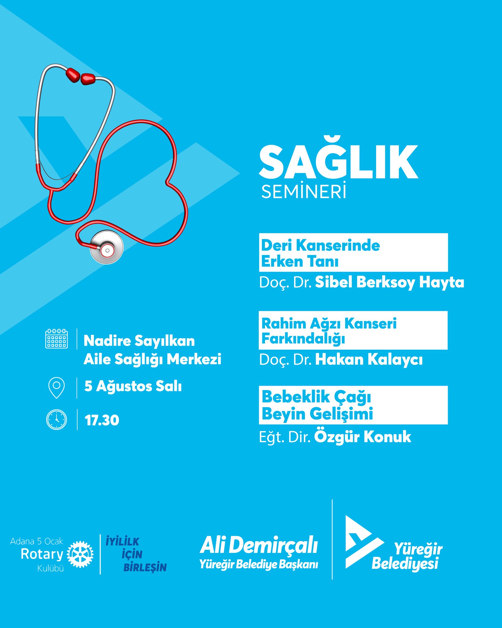 Yüreğir Belediyesi, sağlık alanında bilinçli bireylerin yetişmesine katkı sağlamak amacıyla bu tür etkinliklerin sürdürüleceğini belirterek tüm vatandaşları seminere davet etti.