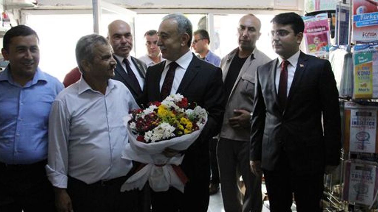Vali Büyük daha sonra Esnaf gezilerini başladı. Fabrikalar Caddesindeki esnafları tek tek ziyaret eden Vali Büyük’e vatandaşlar büyük ilgi gösterdi. İlçede kırtasiye hizmetleri veren Gaffar Özdemir Vali Büyük’ü işyerine davet etti. Valiye çiçek veren Gaffar Özdemir, daha sonra Vali ve beraberindekilere kızılcık kirazı ile incir ikramında bulundu. Vali Büyük, Gaffar Özdemir’e teşekkür etti.
