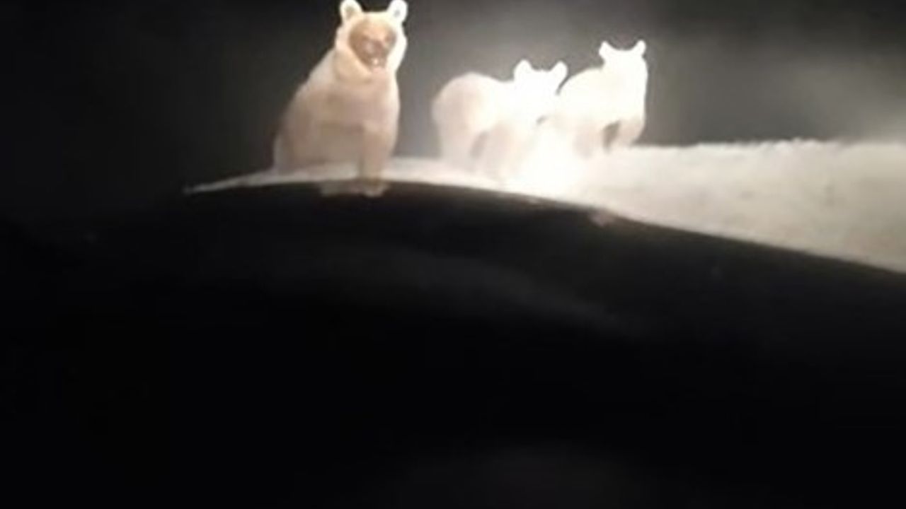 İlçede özel bir firmada operatör olarak çalışan Serkan Noyan, akşam saatlerinde şantiyeye giderken yol üzerinde ayı ailesini fark etti. Aracın ışığıyla irkilen ayılar kısa süre içinde bölgeden uzaklaştı. Ancak bir süre sonra şantiye yakınlarında yeniden görülen ayı ailesinin yiyecek aradığı gözlendi.