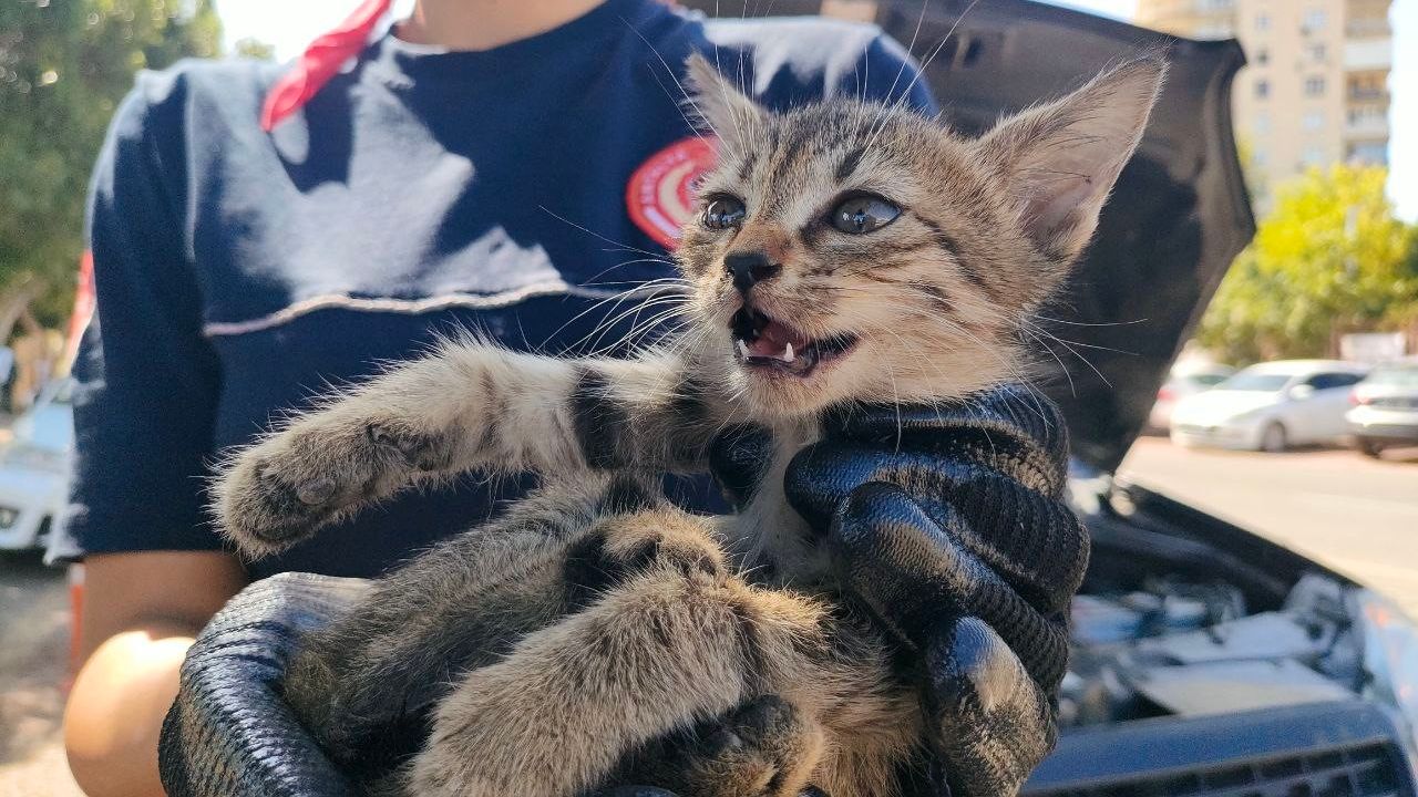 Olay, Muratpaşa ilçesi Meltem Mahallesi İsmail Baha Süralsan Caddesi üzerine meydana geldi. 07 R 3841 plakalı hafif ticari aracıyla Varsak’a doğru seyir halindeki Nazif Kol, kedi sesi duyunca sağa park etti. Motor bölümünden kedi sesi geldiğini duyan Kol, kendi imkanlarıyla kediyi çıkaramayınca durumu 112 Acil Çağrı Merkezi’ne bildirdi. İhbarla adrese Antalya Büyükşehir Belediyesi itfaiye ekipleri geldi. İlk olarak kedinin bulunduğu noktayı tespit eden ekipler, kurtarma çalışmasına başladı. Aracın altından ve üstünden kediyi bulunduğu yerden çıkarmaya çalışan ekipler büyük çaba harcadı. Elinde eldiven bulunan kadın itfaiyeci motor bölümündeki kediyi yakaladı. Korktuğu gözlemlenen yavru kediyi, bir kadın avukat bakımı için veterinere götürdü.