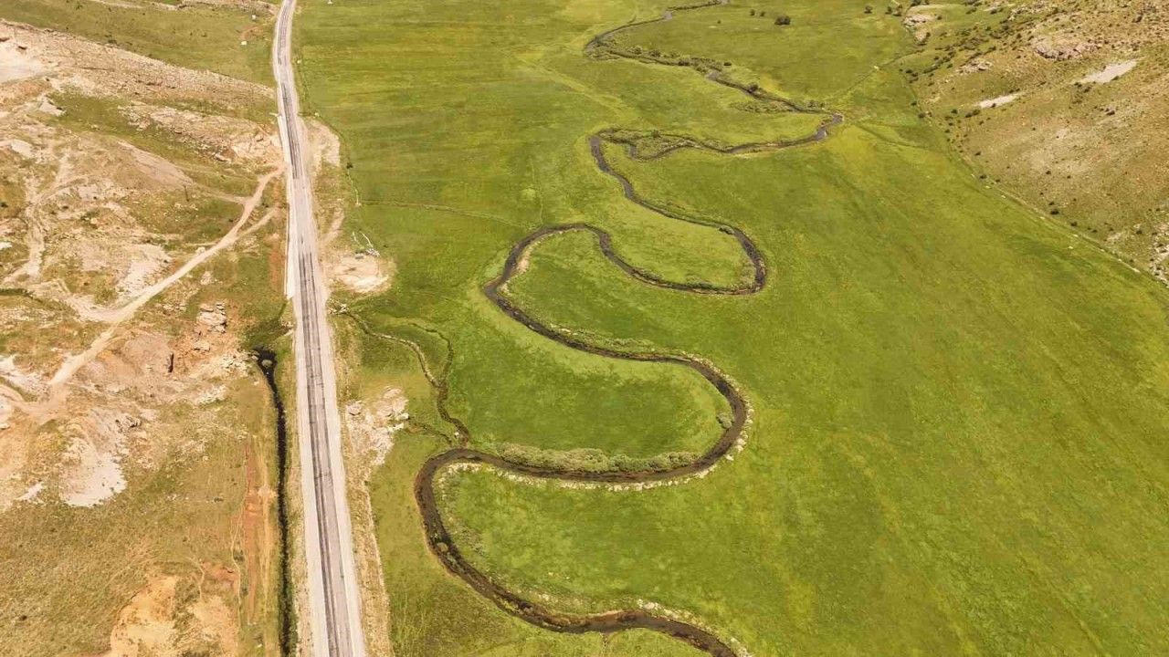 Tarım arazileri arasından süzülen bu menderesler, doğanın görsel şovunu bir kez daha gözler önüne seriy