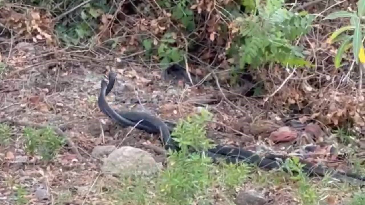İzleyenleri şaşırtan bu doğa anı, özellikle yılanların bahar aylarında sergilediği davranışlara dair ilgi çekici bir örnek olarak kayda geçti.