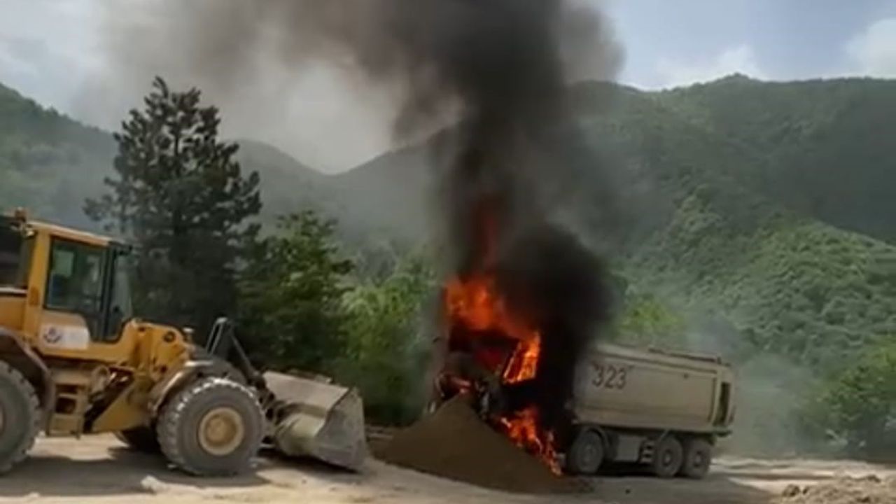 Yangın sonucunda kamyonun yalnızca damper kısmı zarar görmeden kurtarılırken, aracın diğer tüm bölümleri yanarak kullanılmaz hale geldi. İlk değerlendirmelere göre, yangının çıkış nedeni olarak kamyonun turbo sisteminde meydana gelen bir patlama gösteriliyor.