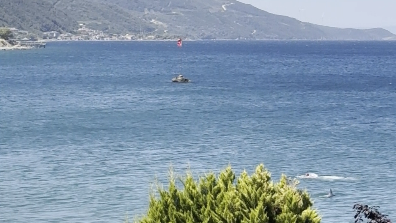Görüntülerde, yunusun kıyıdan açığa doğru yüzdüğü sırada, vatandaşın da kıyıya doğru yüzerek ilerlediği görülüyor. O anları cep telefonlarıyla kaydeden çevredeki vatandaşlar büyük heyecan yaşadı. Yunus balığı bir süre denizde gezindikten sonra gözlerden kayboldu.