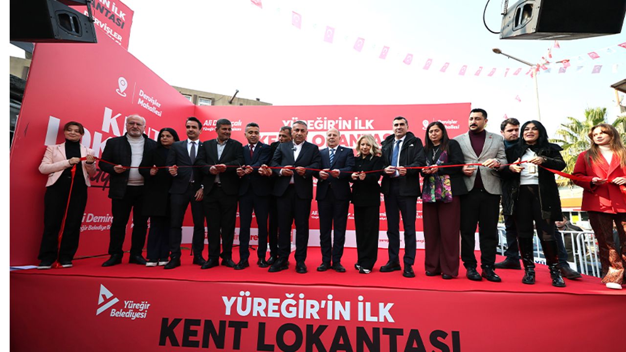Açılış kurdelesi, protokol üyelerinin katılımıyla sahnede kesilirken, Dervişler Kent Lokantası uygun fiyatlı ve sağlıklı yemek hizmetiyle Yüreğir halkına hizmet vermeye başladı.