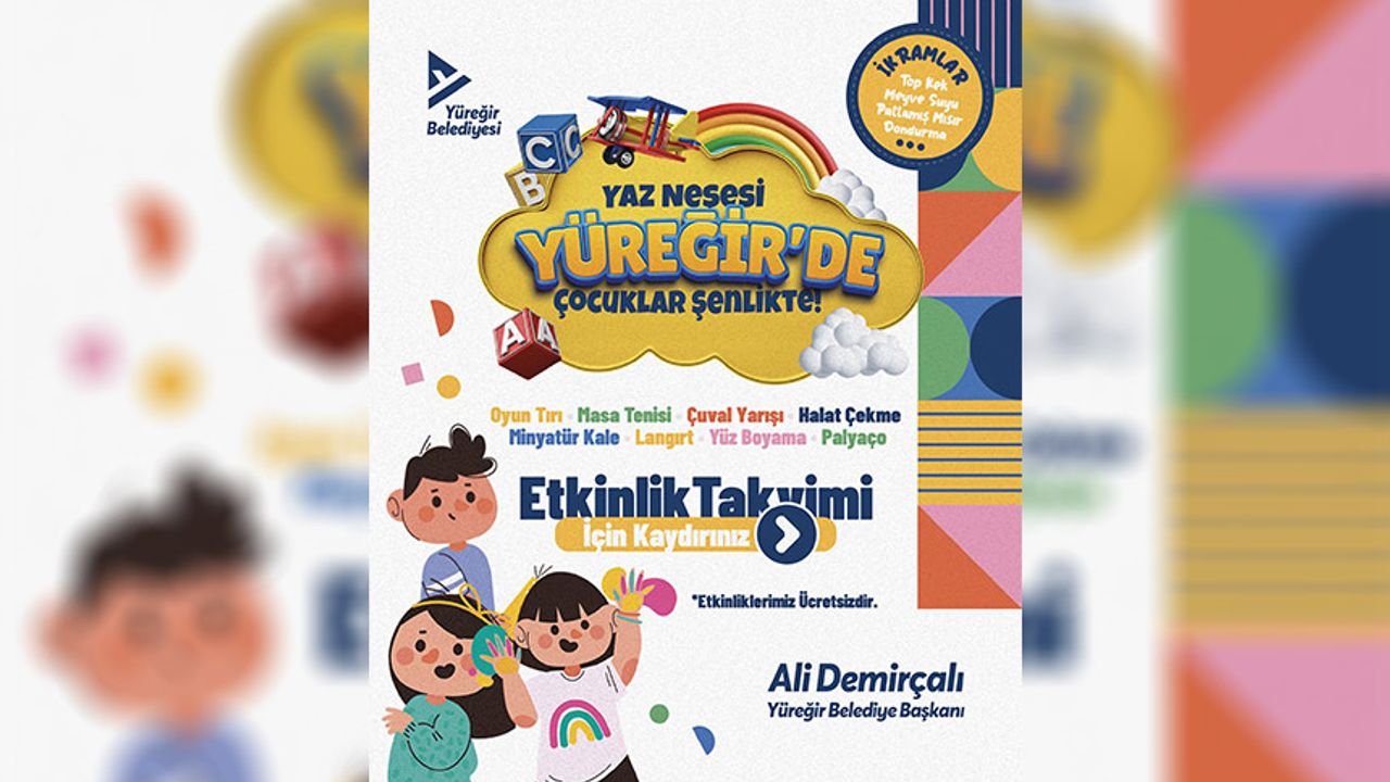 Yaz boyunca devam edecek şenliklerde, oyun tırı, yarışmalar, palyaçolar, yüz boyama ve sürpriz ikramlar çocukları bekliyor. Yüreğir Belediye Başkanı Ali Demirçalı, şenliğin 11 Ağustos’ta başlayacağını duyurarak, “Sevgili çocuklar; sizler için dopdolu bir şenlik hazırladık. Hepinizi bekliyoruz” dedi.