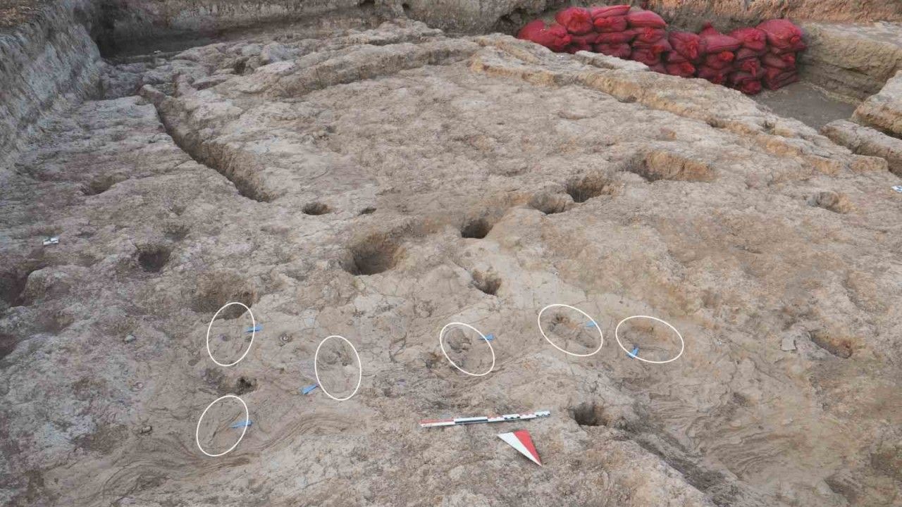 Kazı çalışmaları, Kültür ve Turizm Bakanlığı izniyle 2022 yılında başlatıldı ve Arkeolog Doç. Dr. Rana Özbal başkanlığında devam ediyor. Amik Ovası’nda, M.Ö. 5 bin 200 yılına tarihlenen tabakalarda bulunan ayak izlerinin, çamur ve su birikintilerine maruz kalmış toprak dokusu içinde korunduğu belirtildi. İzlerden birinin 38 numara, diğerinin ise daha büyük ölçülere sahip olduğu tespit edildi.