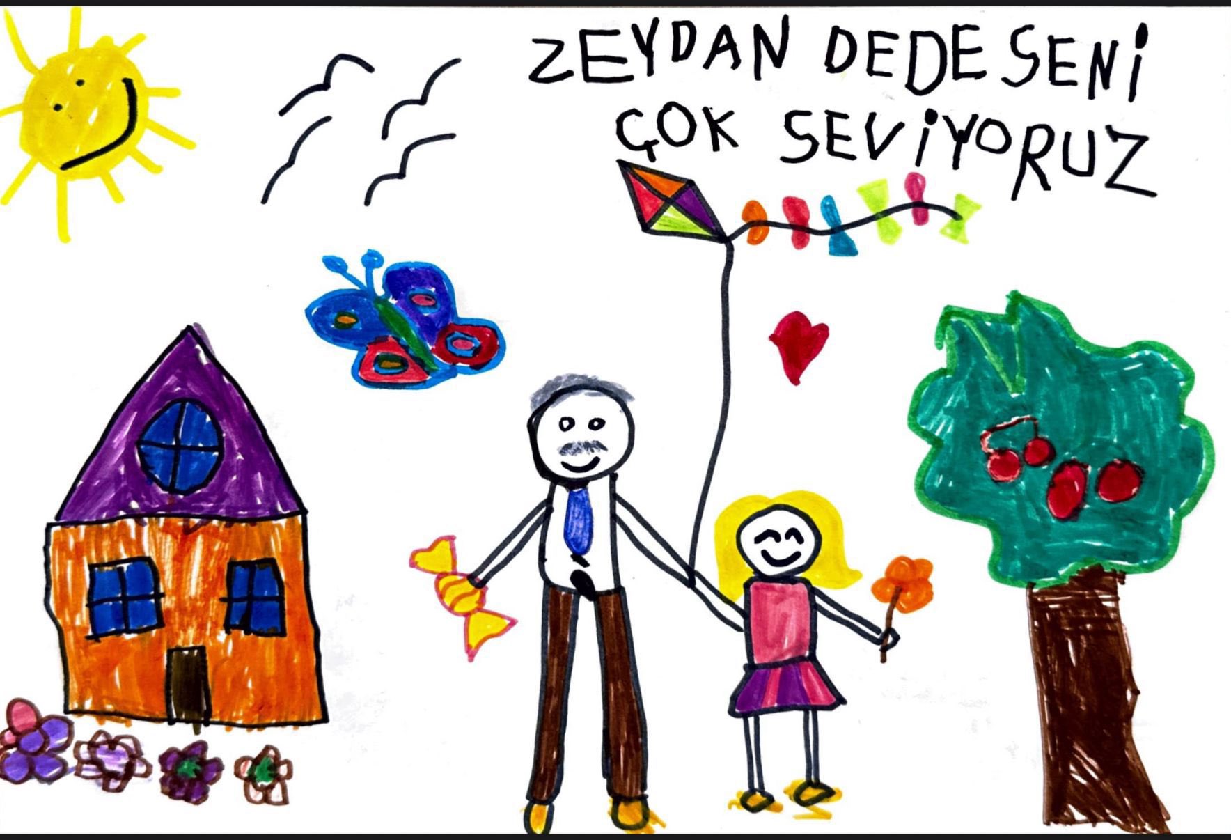 Çocukların çizimlerinde ortak tema ise Zeydan Karalar’a duyulan sevgi ve özlem oldu. Bir başka minik, çocuklarla el ele tutuşan Karalar’ı çizdiği resme “Zeydan dede hemen gel” notunu düştü.